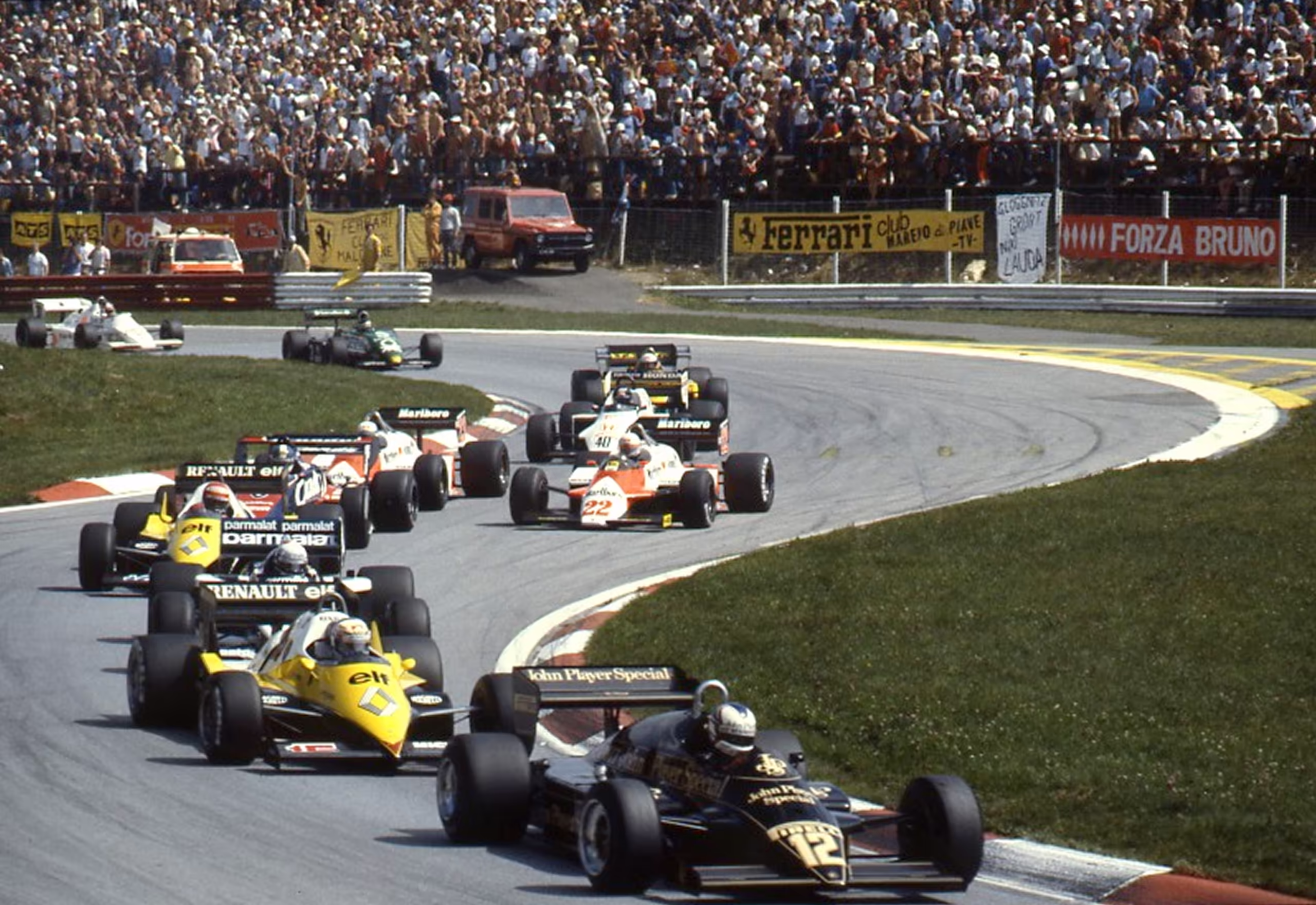 Il passaggio dei piloti con Nigel Mansell su Lotus-Renault (n. 12).